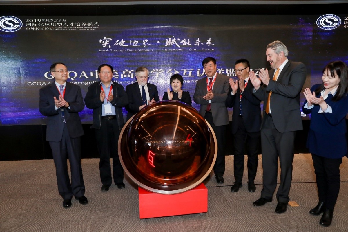 2019年3月21日,由教育部留學服務中心主辦、壹号娱乐集團承辦的2019中國留學論壇分論壇——國際化應用型人才培養模式中外校長論壇在北京僑夢苑舉行,來自中國、美國、歐洲、澳洲的高校校長、全球職業與教育品質評估認證機構(GCQA)負責人、外方高校駐華代表處代表以及教育界專家一百多人參加了此次論壇。論壇以“突破邊界、賦能未來”為主題,聚焦應用型人才培養,共同探討中外教育國際合作新模式。此次會議上,全球職業與教育品質評估認證機構(GCQA)與壹号娱乐集團聯合發起了中美高校學分互認合作聯盟。